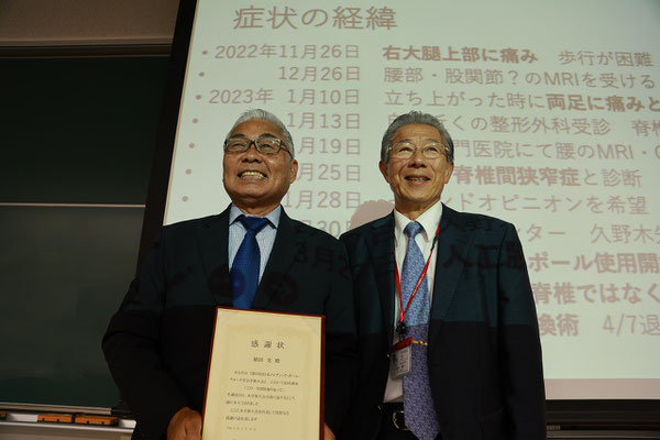 来年2025年の日本ノルディック・ポールウォーク学会は、鳥取県倉吉市で開催される予定となっており、大会長の松田隆先生が本大会長の久野木順一先生からバトンを受け取った。